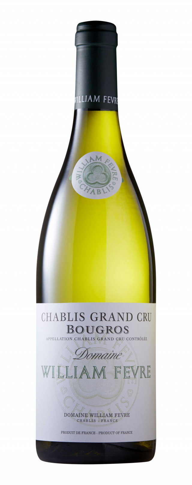 Le Chablis Grand Cru "Bougros" 2024 du Domaine William Fèvre représente l'expression la plus généreuse et la plus athlétique de la colline des Grands Crus. Situé à l'extrémité nord-ouest de cette colline, le climat de Bougros bénéficie d'une inclinaison moins marquée et d'un sol plus profond, ce qui donne naissance à un vin de puissance et de rondeur.